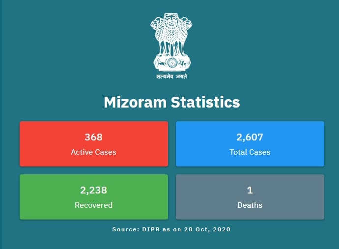 Presently, 373 infected persons are undergoing treatment. Meanwhile, with the surge of infections in last few days, the State Government has declared lockdown in Aizawl Municipal area. The lockdown in Aizawl City area began from yesterday and will remain in force till early morning of 3rd of November.